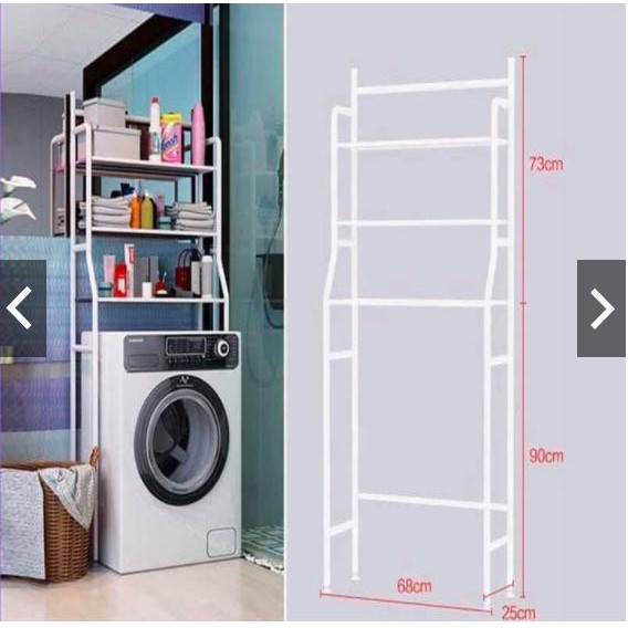- Kích thước: Kệ máy giặt 3 tầng 68x25x163cm; Kệ bồn cầu 3 tầng 50x25x160cm.