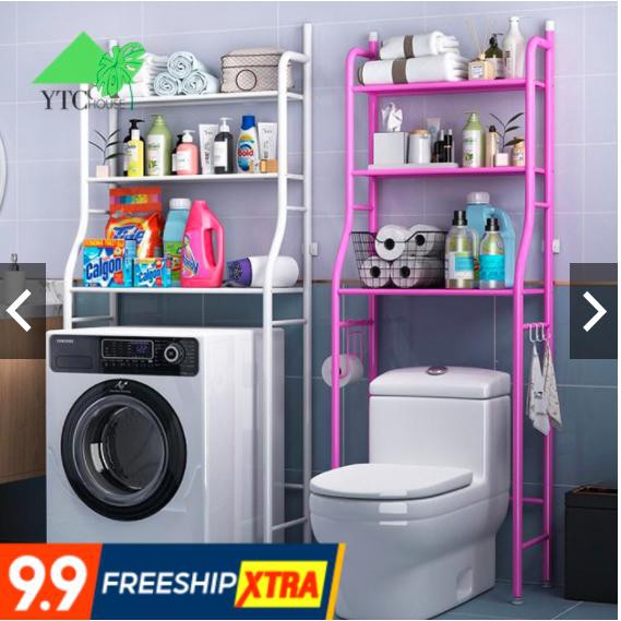 Đặt kệ phía bên trên máy giặt hoặc bồn cầu để tiết kiệm không gian sắp xếp các đồ đạc gọn gàng ngăn nắp tránh các đồ vật rơi vào đầu.