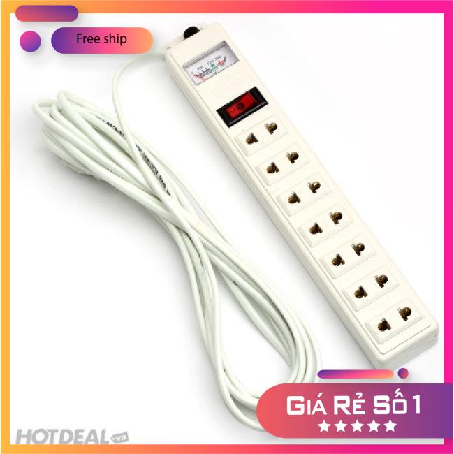 Ổ cắm điện 5m có đồng hồ thương hiệu Việt Nam- hàng có 7 lỗ , nhựa chống cháy ABS