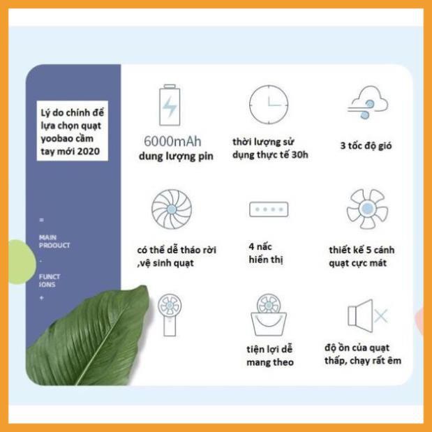 ⚡Giá Rẻ⚡ Quạt tích điện mini Yoobao 3000mah chính hãng|pin trâu|mẫu mới 2020- Bh 6 tháng|1 đổi 1 trong 7 ngày