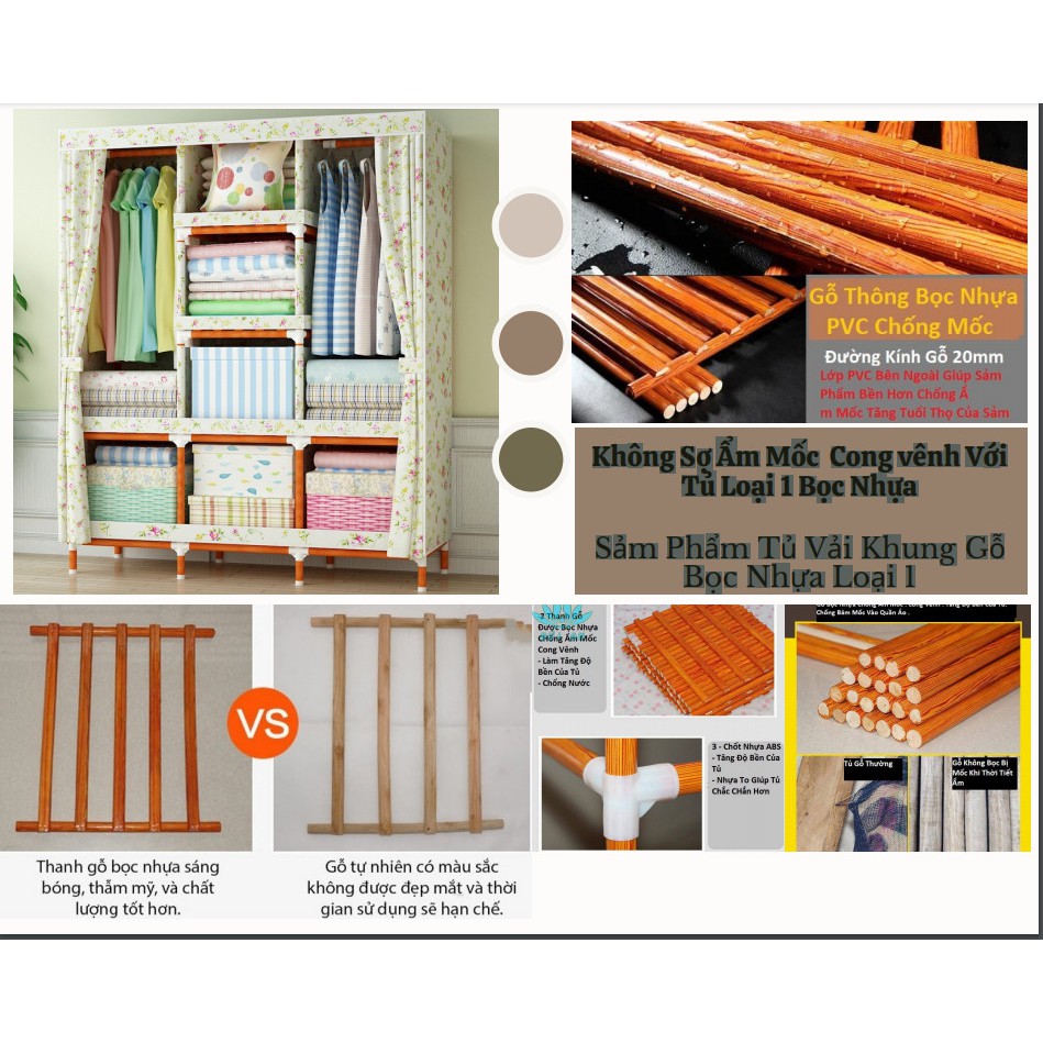 Giới thiệu [GIÁ RẺ] Tủ vải khung gỗ cỡ lớn Đa Dụng cực chắc chắn 3 buồng gỗ bọc