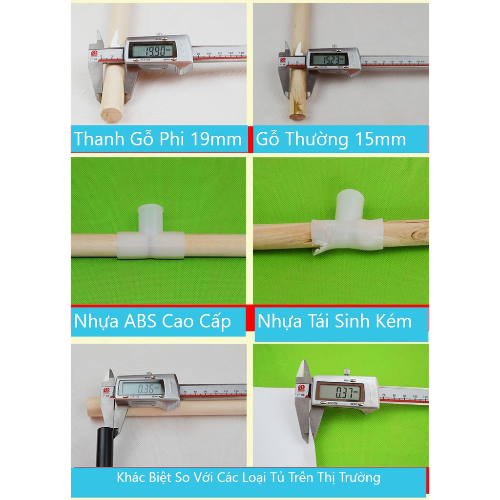 - Thanh gỗ đường kính phi 18mm được bọc nhựa chắc chắn.