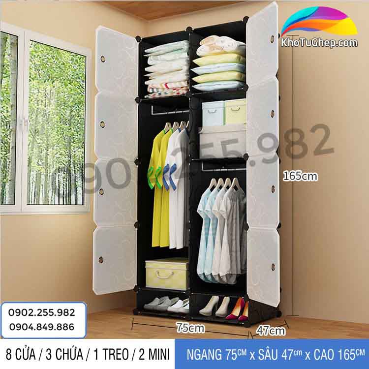 Tủ nhựa ghép 8 ô lớn - 2 ô nhỏ loại to Size 47 cm (đủ đồ, tặng kèm thanh treo)🎯 Kích thước sau khi lắp: 155x70x47 cm (cao x rộng x sâu)