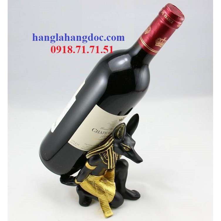 Giá rượu để bàn phong cách Ai Cập, thần Anubis mình người đầu chó