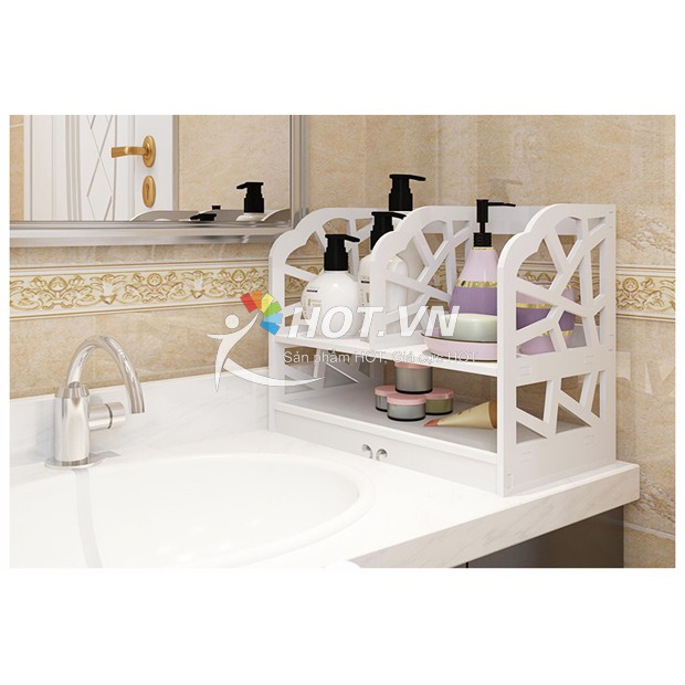 Giá Sách Để Bàn Chất Liệu Bằng Gỗ Nhựa Chống Thấm Nước - Chịu lực tốt - 2 Tầng 3 NgănSHOP CHUYÊN SỈ LẺ KỆ MỸ PHẨM ĐA NĂNG
