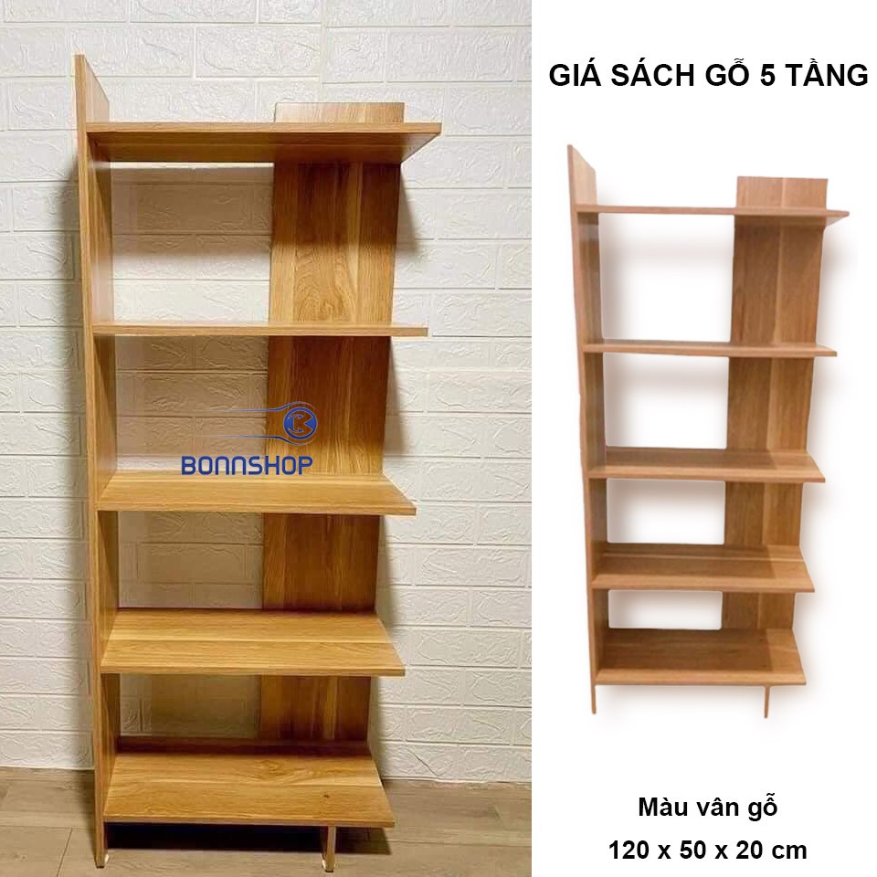 Giá Sách Gỗ 5 Tầng - Kệ Góc Tường -Gỗ MDF Phủ Melamine Chống Ẩm Mốc Kiểu Dáng Hiện Đại Thiết Kế Chắc Chắn KT 50x20x120cm