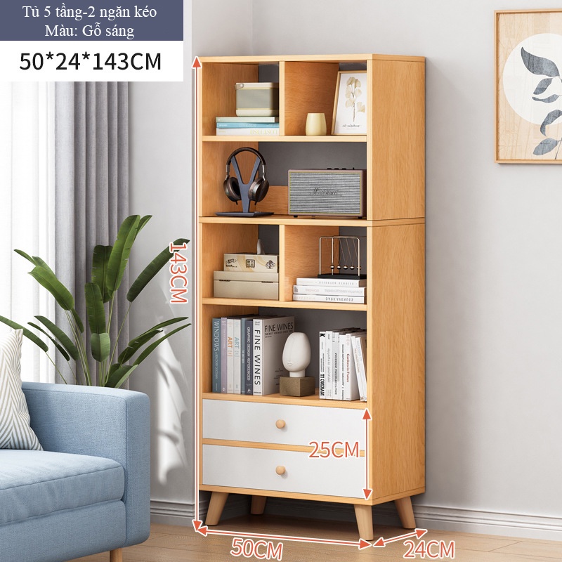 Giá sách kèm ngăn kéo lưu trữ đồ tiện dụng chất liệu gỗ MDF chống ẩm màu vân gỗ bắt mắt