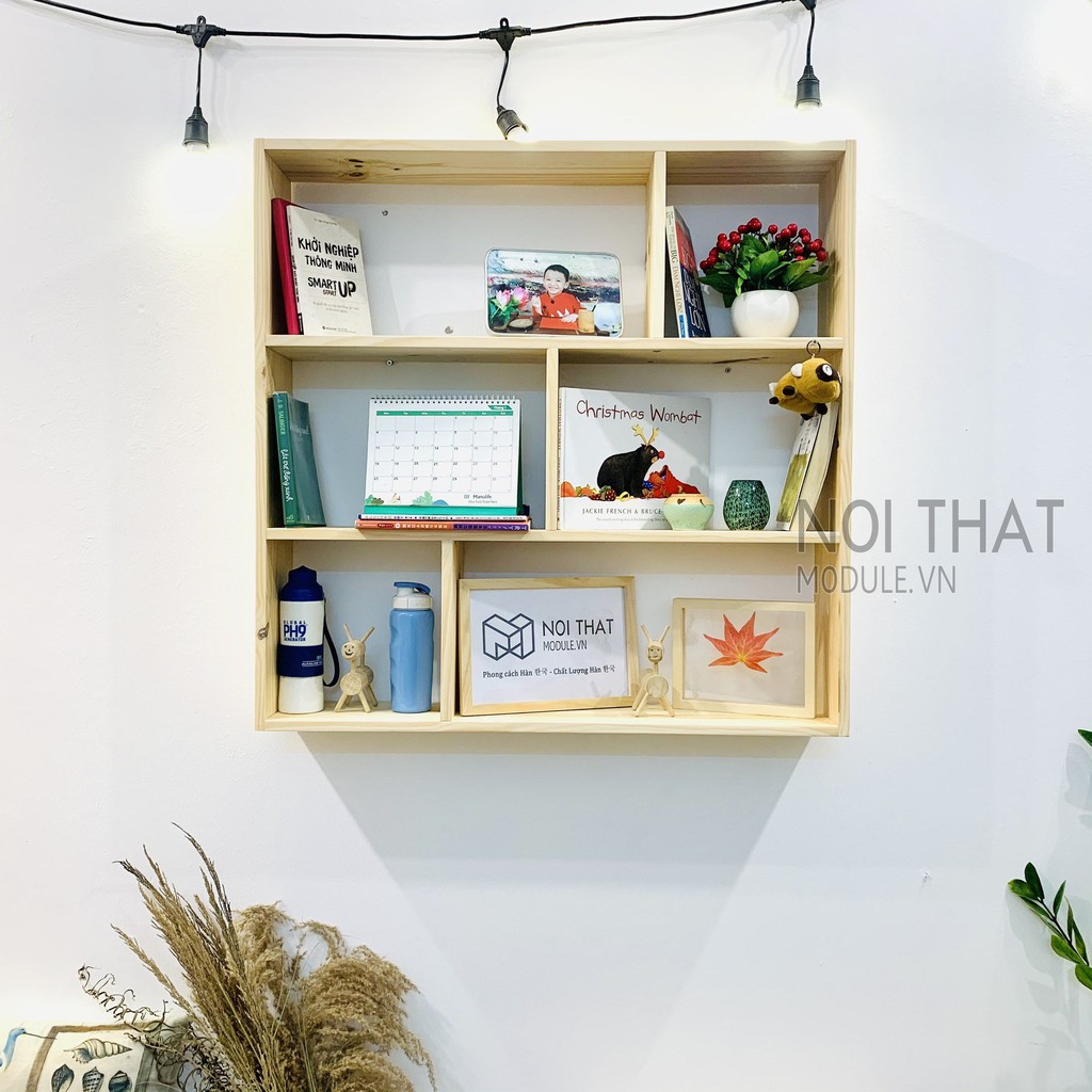 Giới thiệu Giá Sách Treo Tường Kích Thước 90x90cm, Chất Liệu Gỗ Thông Cao Cấp
