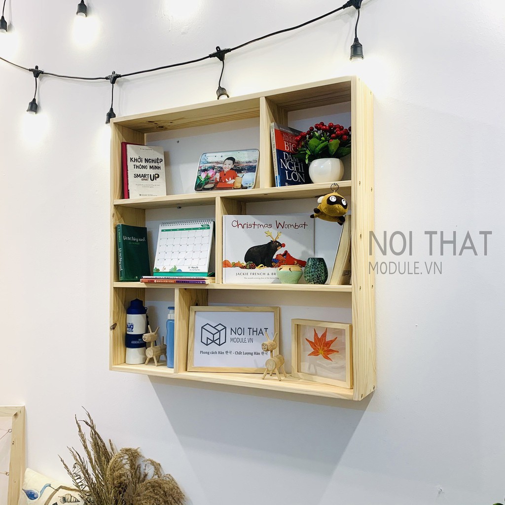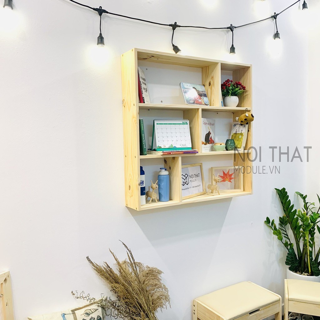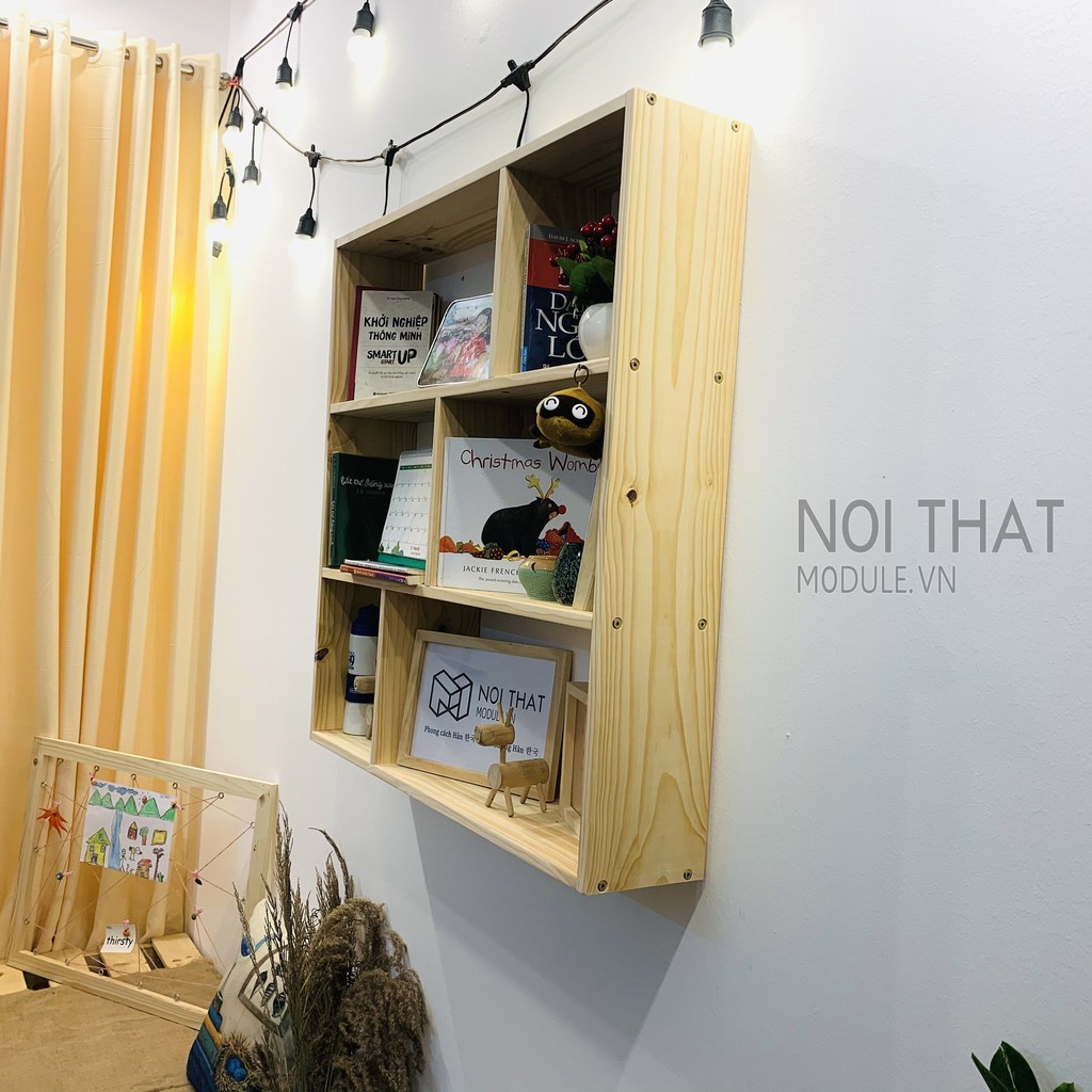 Giá Sách Treo Tường Kích Thước 90x90cm, Chất Liệu Gỗ Thông Cao Cấp