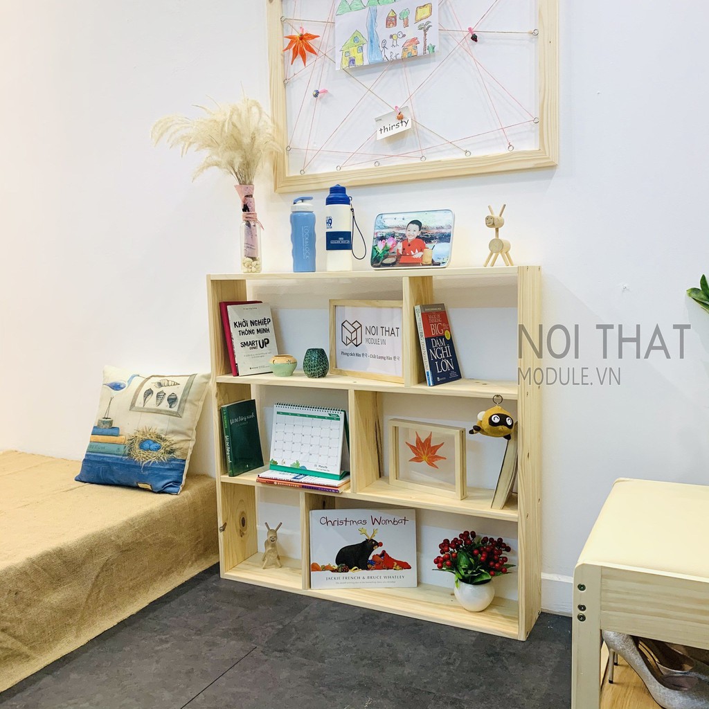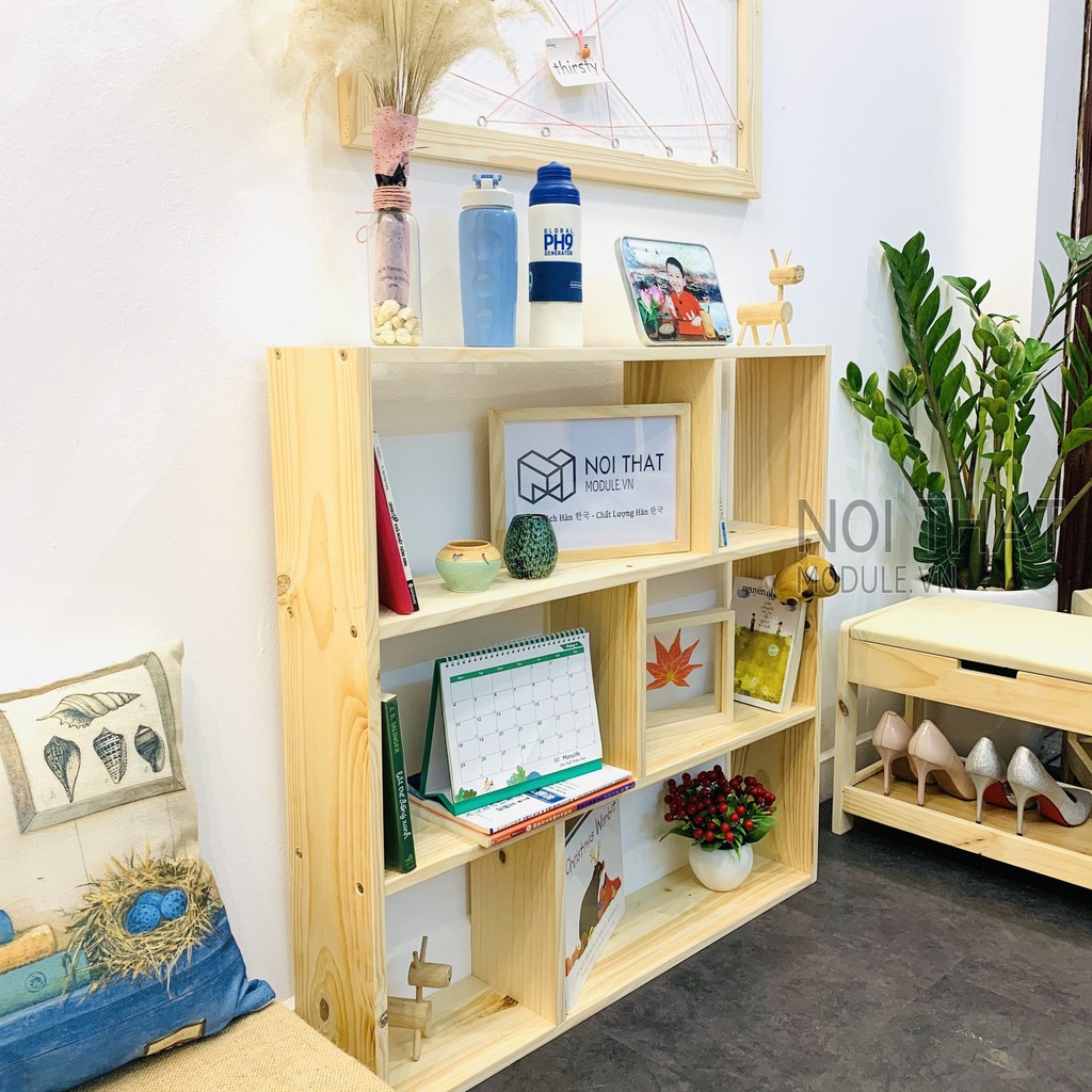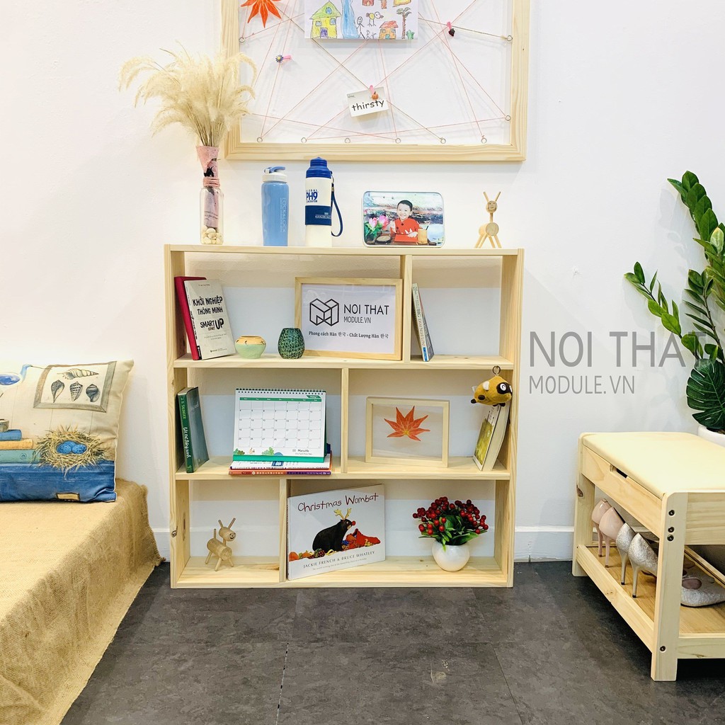 - Đặc điểm sản phẩm: Giá sách được làm từ gỗ thông nhập khẩu cao cấp, gỗ đã được tẩm sấy kỹ càng, không mối mọt, ẩm mốc. Sản phẩm được sản xuất trên dây truyền hiện đại, các thớ gỗ được bào bóng mịn không gây tổn thương cho da, màu vân gỗ tự nhiên, các thớ gỗ mịn tạo cho kệ một nét đẹp tao nhã