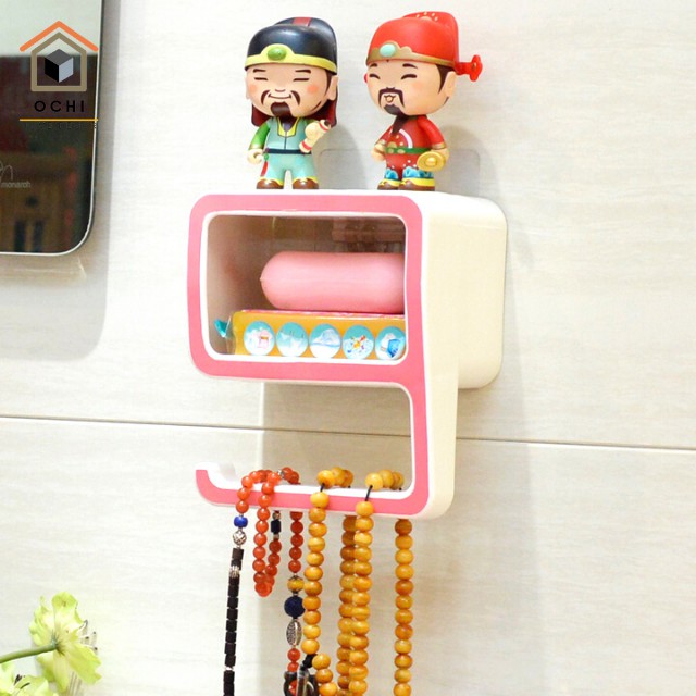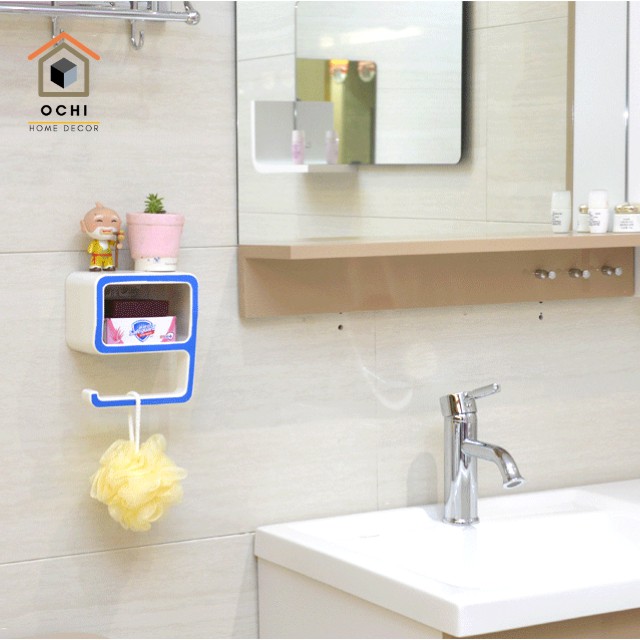 Kệ giá hộp nhựa treo tường để xà bông kèm móc kèm miếng dán tường siêu chắc treo Phòng Tắm Thông Minh trang trí.Kích thước 14.8*17.8*9.5CM.