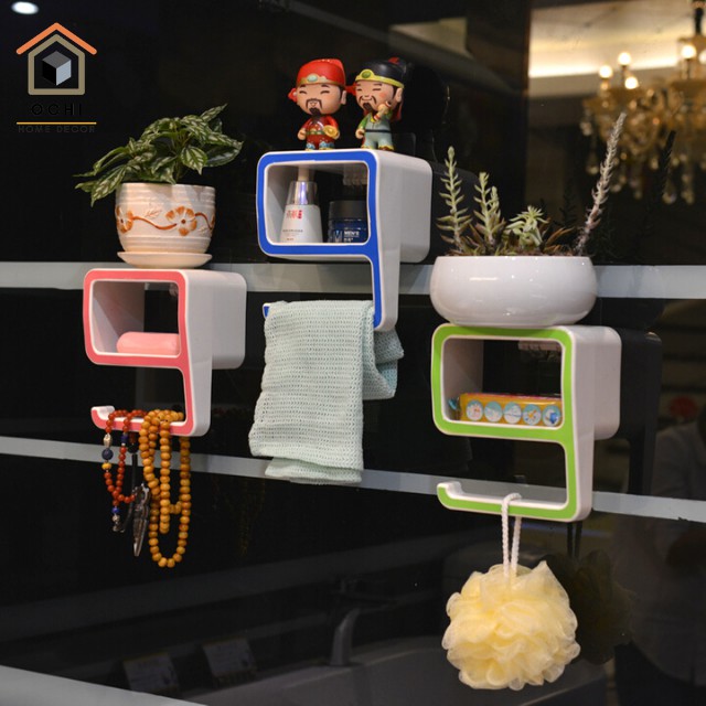 Kệ giá vừa để trang trí vừa để đồ xà bông , hộp...có móc kèm để các vận dụng khác như đồng hồ, vòng tay, khăn, hay khăn cọ....