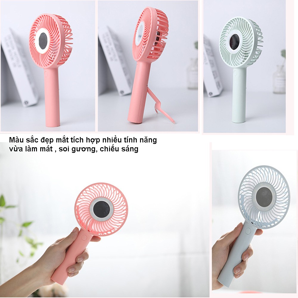 [ GIÁ SẬP SÀN ] QUẠT CẦM TAY MINI KẾT HỢP 4 TÍNH NĂNG ( làm mát, tích điện, soi gương,chiếu sáng )