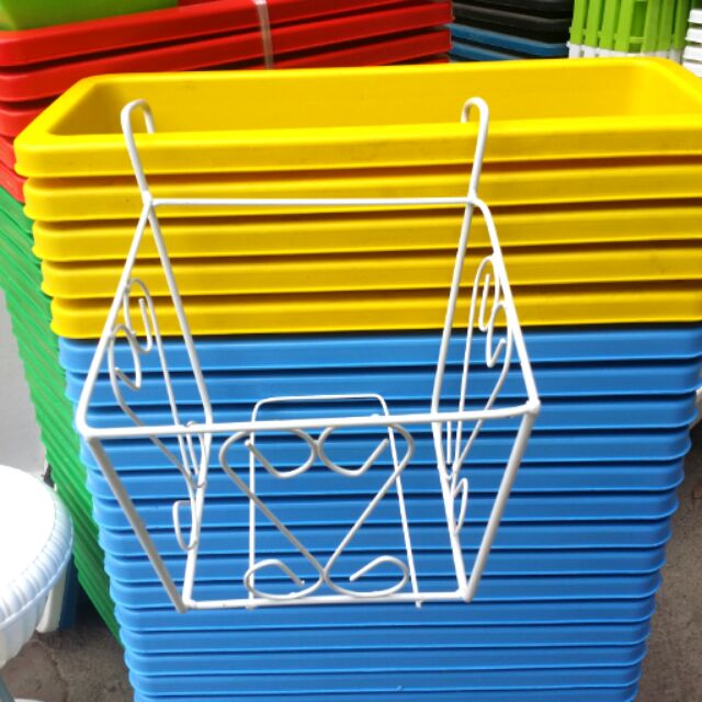 Bộ khung-chậu trồng hoa, rau treo lan can ban công sẽ giúp bạn tiết kiệm tối đa diện tích gieo trồng của mình mà vẫn đảm bảo mỹ quan, đẹp mắt bà sự tiện lợi trong việc chăm sóc. Kích thước bộ khung-chậu làcao 17cm x cạnh trên 21cm vừa xinh dễ dàng di chuyển, gieo trồng nhẹ nhàng, chất liệu nhựa và sắt chống rỉ sét cứng cáp, chắc chắn và bền đẹp. Nếu nhà bạn có không gian nhỏ hoặc muốn tiết kiệm không gian trồng thì hãy dùng bộ khung-chậu trồng cây chữ nhật này nhé.