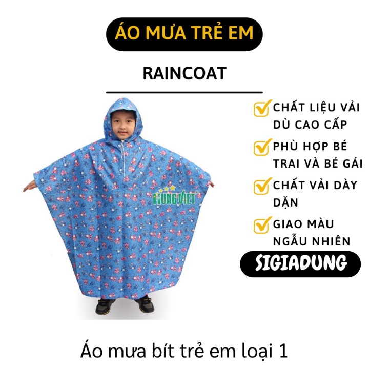 [SGD] Áo Mưa Trẻ Em - Áo Đi Mưa Bít Không Xẻ Tà, Chất Liệu Vải Dù, Chất Dày Dặn 3324