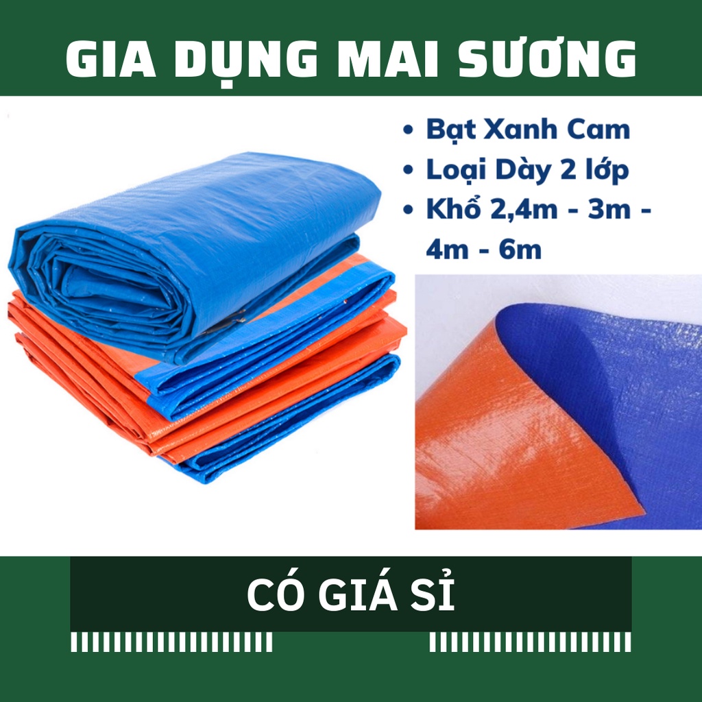 [Giá Sỉ] Bạt Che Xanh Cam 2 Lớp DÀY khổ 2,4m 3m 4m 6m, che mưa che nắng, che công trình