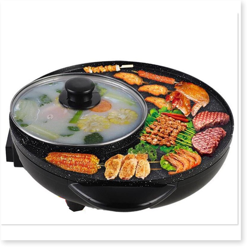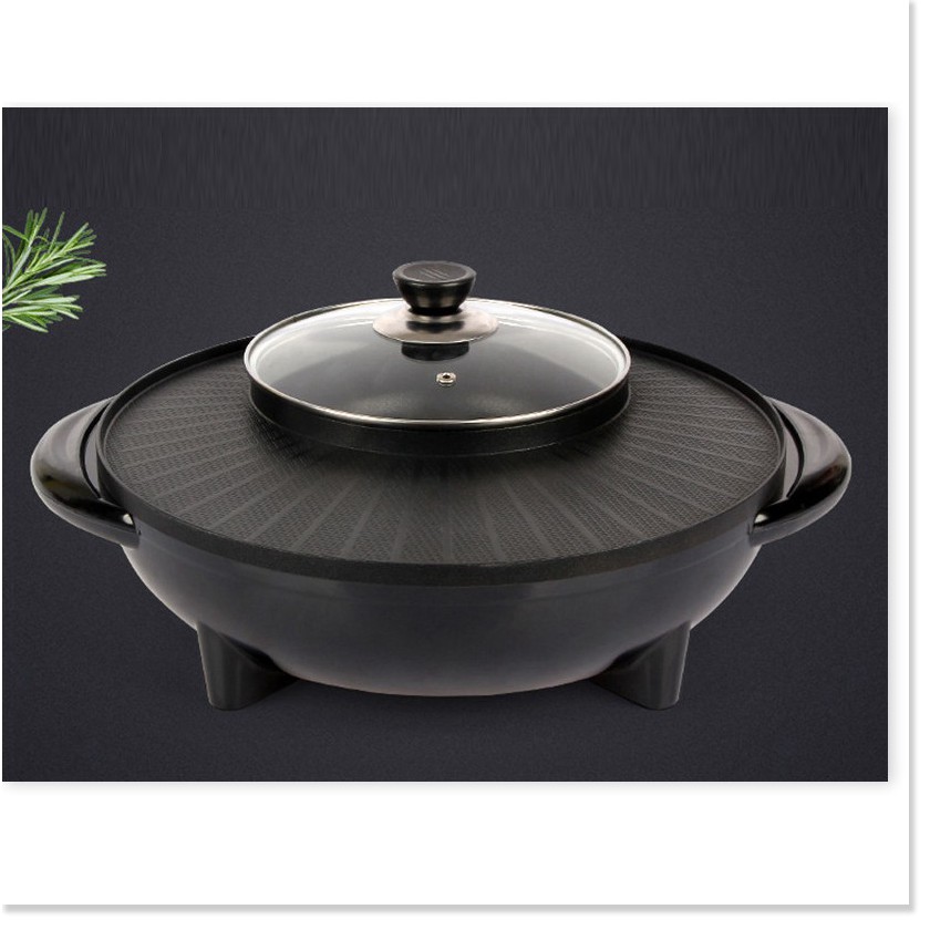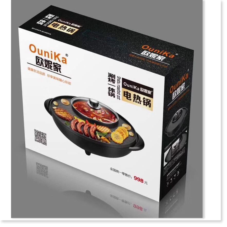 [SGD] Nồi Lẩu Nướng Điện - Bếp Lẩu Nướng Bàn Tròn Đen Kết Hợp 2in1 36cm OuniKa 9215