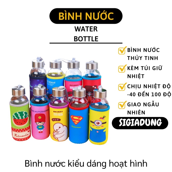 [SGD] Bình Đựng Nước - Bình Nước Thủy Tinh Có Túi Giữ Nhiệt Chịu Nhiệt Độ Cao 300ml 5025