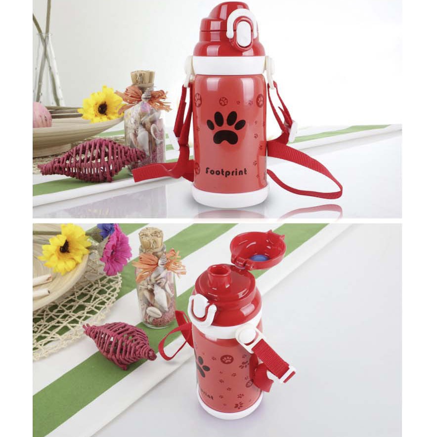 Bình giữ nhiệt cho bé hình bàn chân chó 600ml làm bằng inox an toàn, không độc hại cho bé. Với thiết kế trang nhã, màu sắc năng động, bạn dễ dàng kết hợp bình giữ nhiệt trẻ em với nhiều loại trang phục hoặc các buổi tiệc picnic ngoài trời của bé yêu. Bình có dây đeo giúp bé có thể đeo bình mang theo dễ dàng.