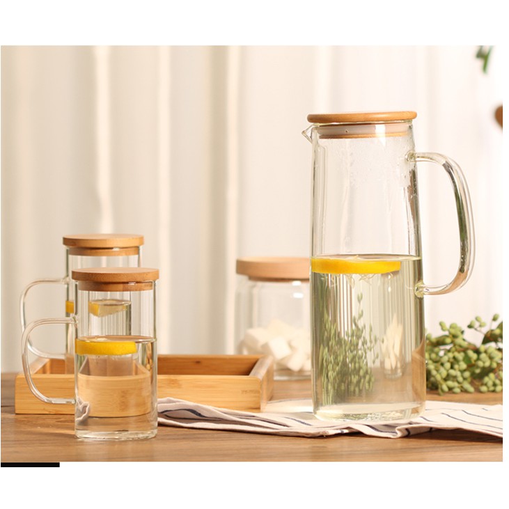 Giới thiệu [Giá sỉ] Bình thuỷ tinh đựng nước nắp gỗ chịu nhiệt độ cao dày dặn đẹp 1,3 lít và 1,6 lít giá rẻ