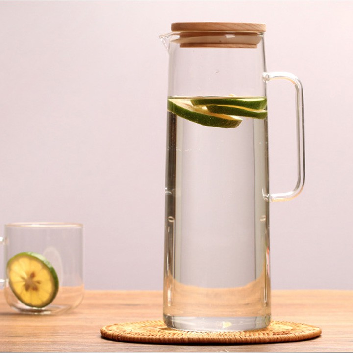 Nhà cửa & Đời sống > Bộ đồ bàn ăn > Bình nước & phụ kiện || [Giá sỉ] Bình thuỷ tinh đựng nước nắp gỗ chịu nhiệt độ cao dày dặn đẹp 1,3 lít và 1,6 lít giá rẻCòn hàng