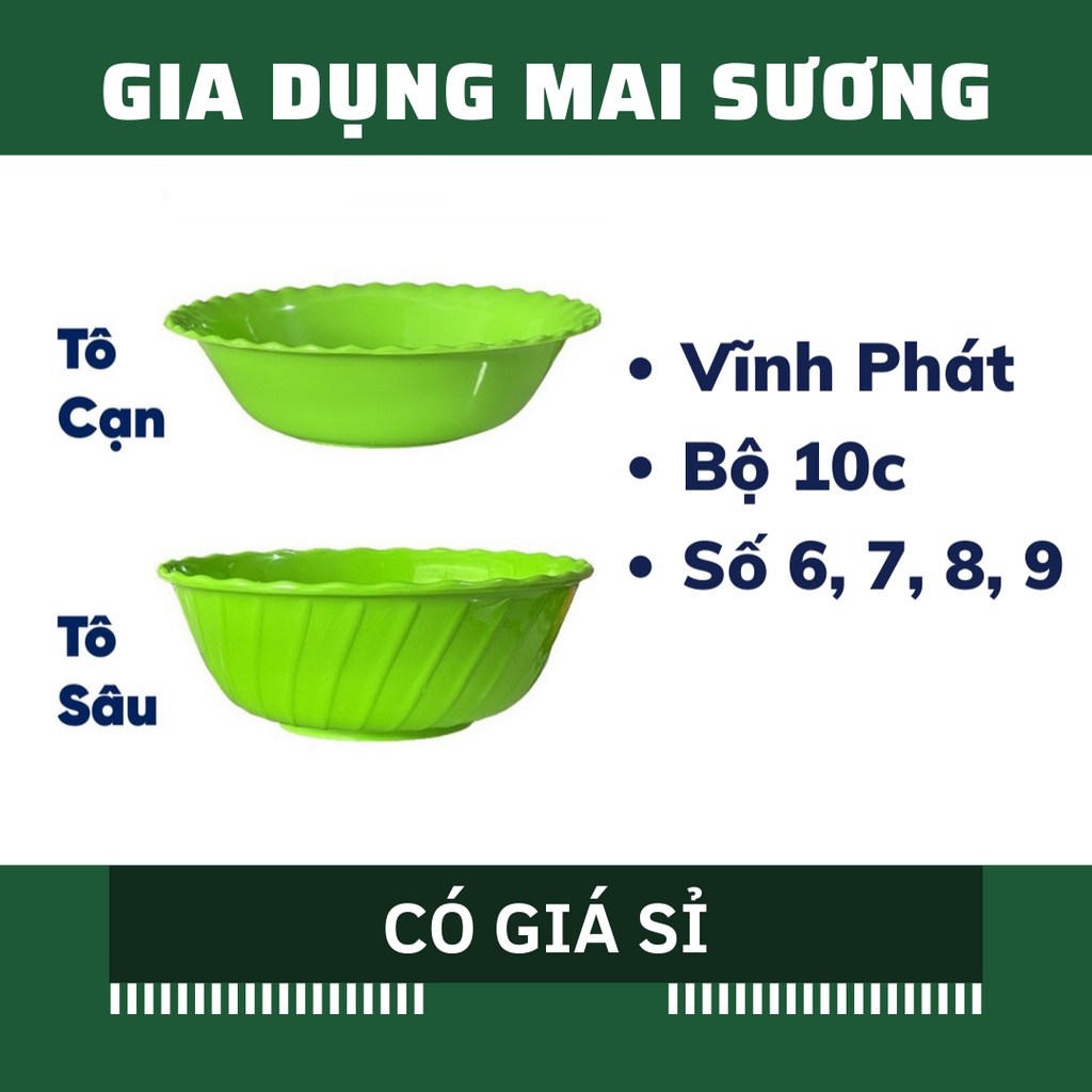 Giới thiệu [Giá Sỉ] Bộ 10 Tô Sâu Cạn Nhựa Xanh Vĩnh Phát