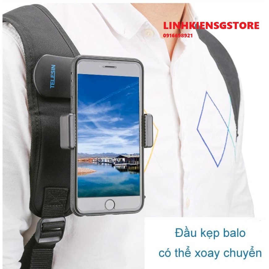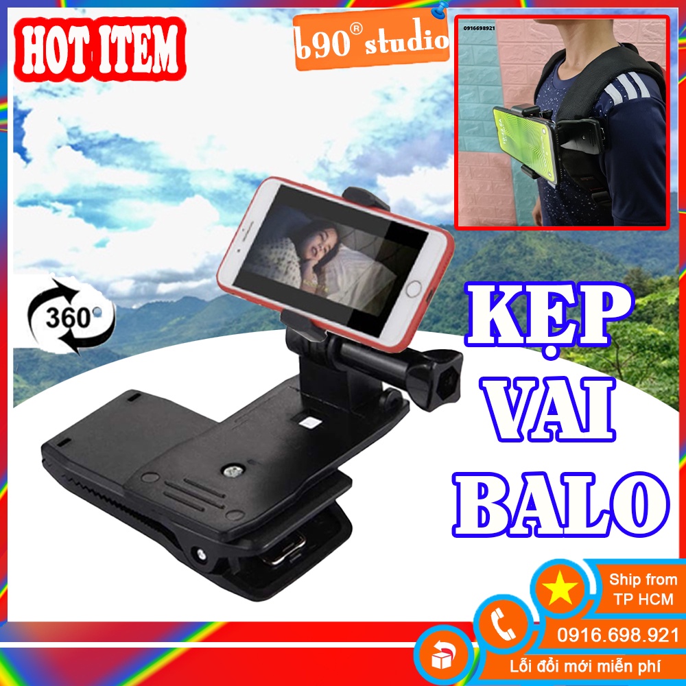 BỘ KẸP VAI BALO CHO ĐIỆN THOẠIPhụ kiện kẹp ba lô xoay được 360 độ cho máy quay hành động GoPro, Sjcam, Yi Action, Osmo Action