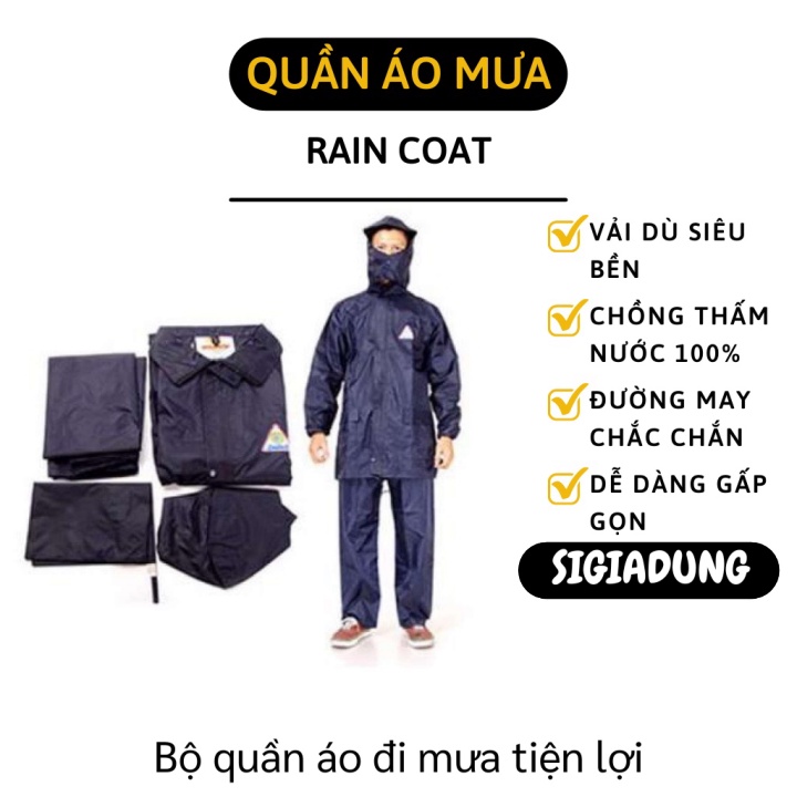 Giới thiệu [SGD] Áo Mưa Bộ - Bộ Quần Áo Đi Mưa Người Lớn Vải Dù Siêu Bền, Chống Thấm Nước Tuyệt Đối 3323