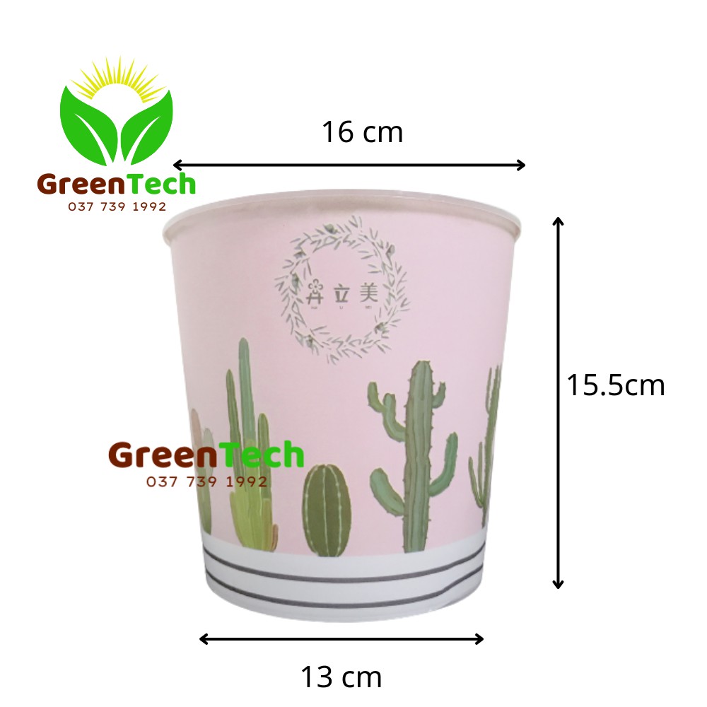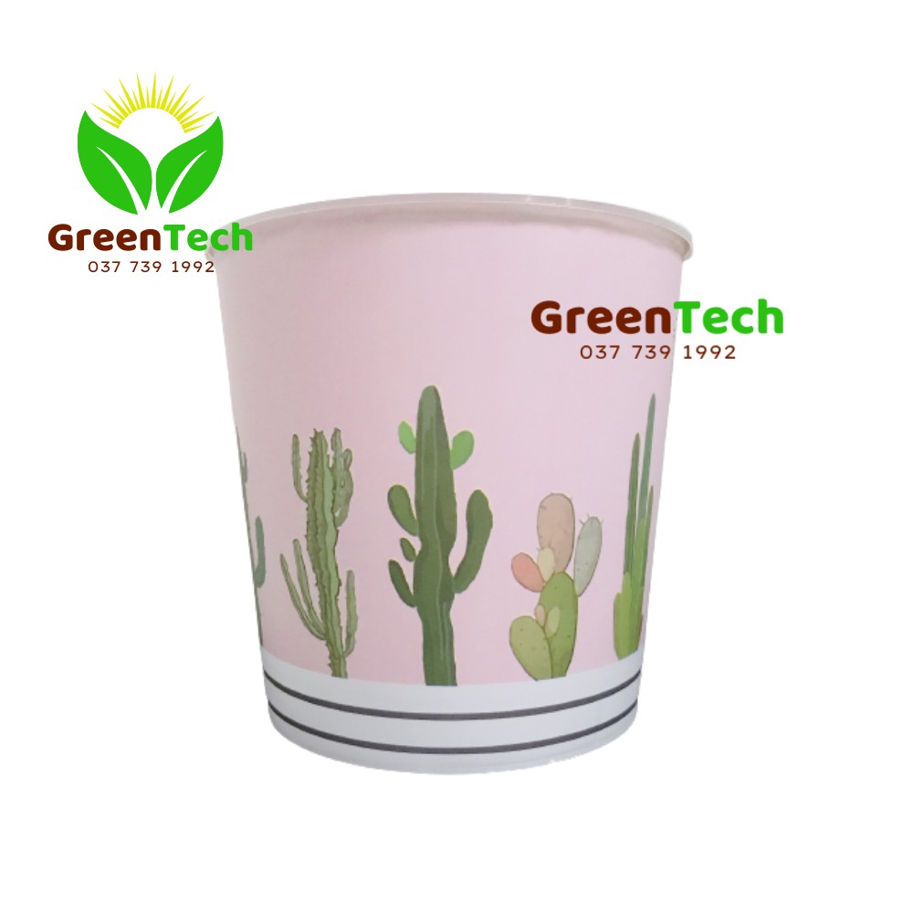 ☘️Chậu để bàn màu hông, họa tiết cây xương rồng, có vạch chia nước