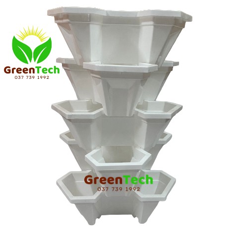- Chậu trồng xếp tầng giúp tiết kiệm diện tích, phù hợp trồng rau ăn lá, hoa tiểu cảnh các loại