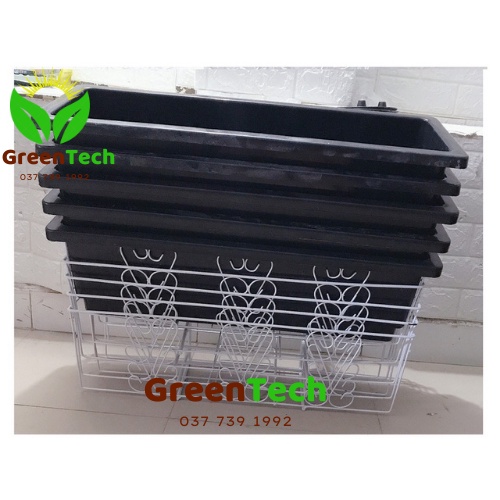 [ Giá Sỉ ] Combo 1 Gía Sắt Treo Kèm Chậu Hoa Ban Công Hình Chữ Nhật 63cm