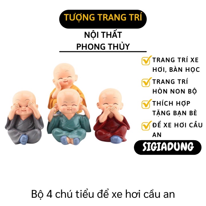 [SGD] Tượng Chú Tiểu - Combo 4 Tượng Hòa Thượng Trang Trí Xe Hơi, Bàn Làm Việc, Tứ Không 3437