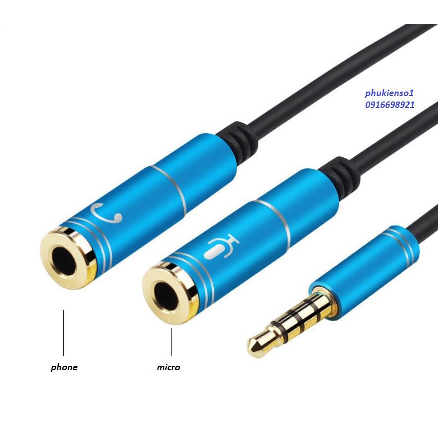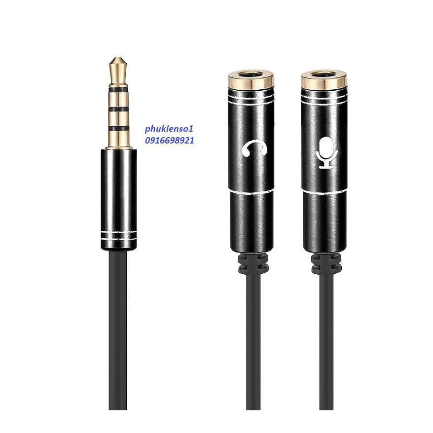 Dây jack chuyển 3.5 ra 2 đầu tai Phone và Mic cho laptop điện thoại