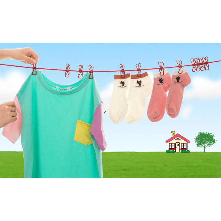 [SGD] Dây Phơi Quần Áo - Dây Phơi Kẹp Sắt Có Móc Thông Minh, Tiện Lợi Treo Vớ, Đồ Trẻ Em 4138