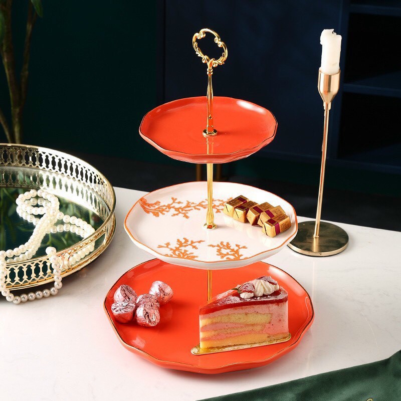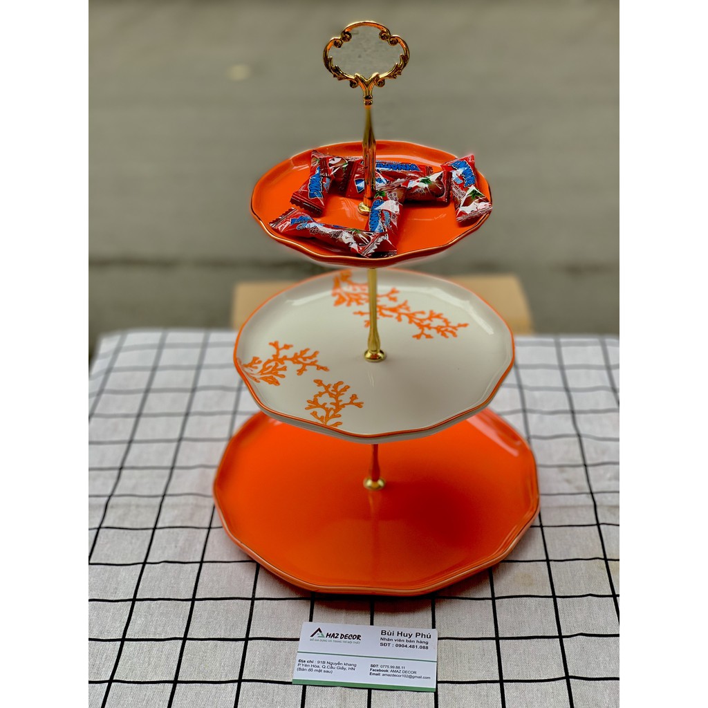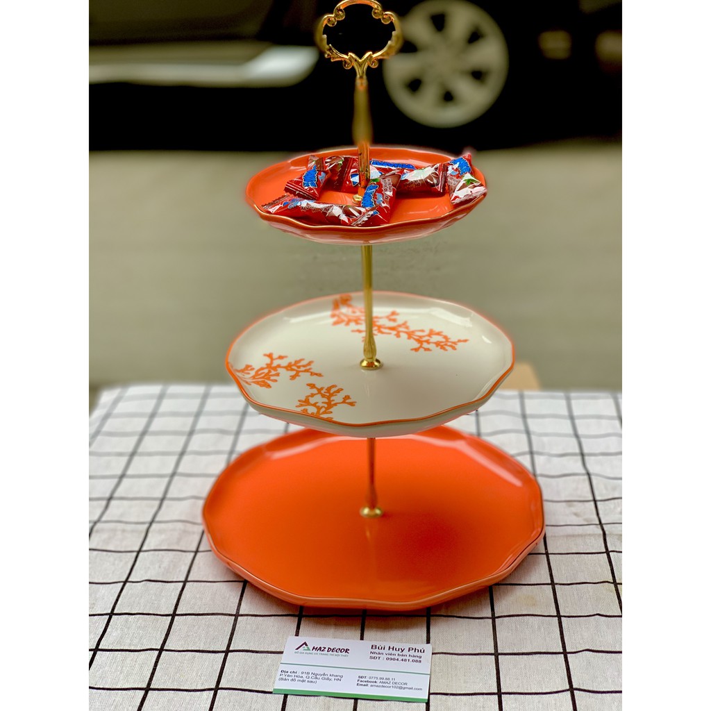 [Giá sỉ đồ decor Tết 2021] Khay kệ đựng bánh kẹo mứt hoa quả Tết bằng sứ cam xanh cao cấp sanh chảnh R05
