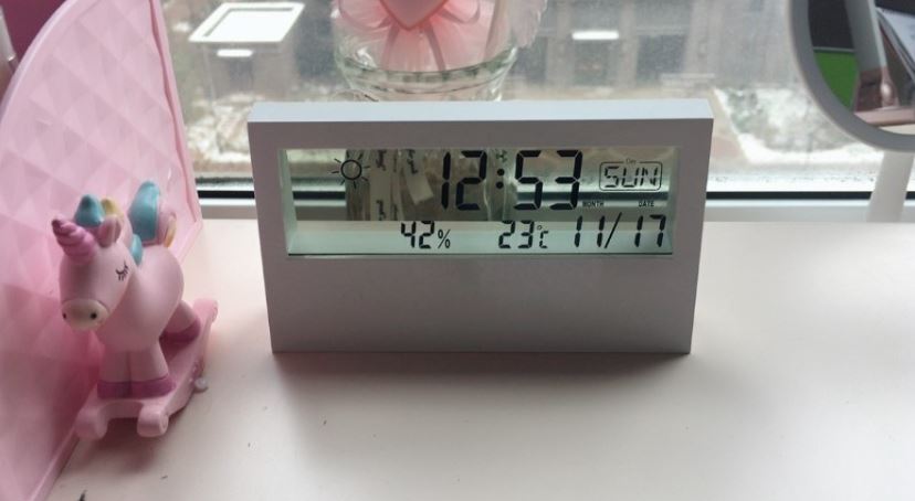 Giới thiệu GIÁ SỈ Đồng hồ để bàn màn hình trong suốt tích hợp xem giờ, ngày tháng, đo nhiệt độ độ ẩm