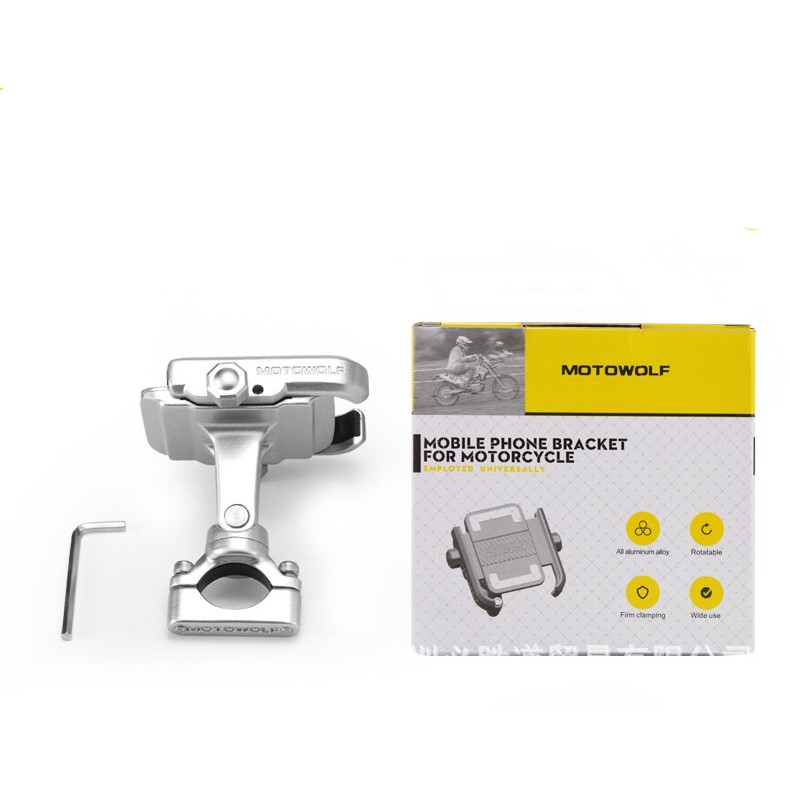 Thông Số Kỹ Thuật : Giá đỡ điện thoại gắn xe máy xe đạp Chất liệu Nhôm MOTOWOLF :Chất liệu: Chất liệu nhôm