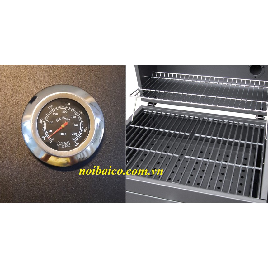 - Tay cầm bằng thép không rỉ và có bảng đo nhiệt độ lò nướng