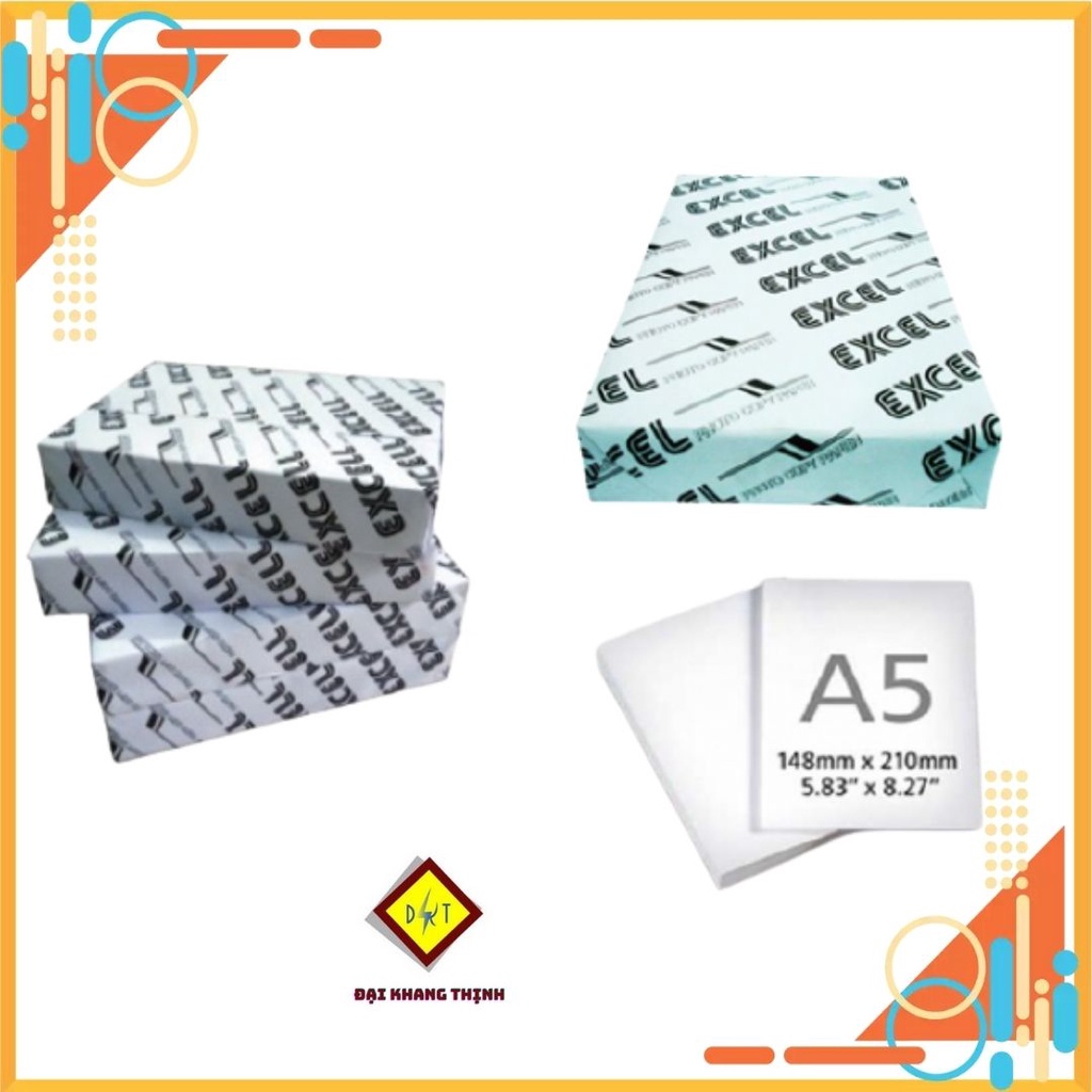- Giấy A5 Excel là loại giấy in photo thông dụng trong các công ty văn phòng hiện nay. kích thước khổ A5, định lượng giấy 70gsm và 80gsm, giấy nặng 70gr đến 80gr trên 1m2, có độ dày tương đối phù hợp với các dòng mấy in hiện đại.
