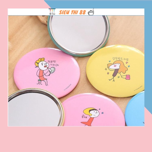 Gương nhỏ đường kính 7cm , tiện lợi khi sử dụng,dễ dàng bỏ túi mang theo khi đi ra ngoài.Trên gương có in những hình ảnh dễ thương trẻ trung ngộ nghĩnh đáng yêu mang phong cách Hàn Quốc.