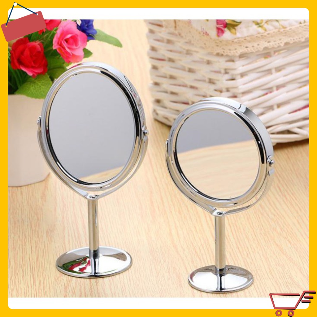 Gương tròn trang điểm 2 măt gương. Kính chất lượng và khung được làm bằng inox không rỉ luôn sáng bóng.