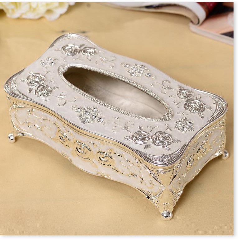Hộp đựng giấy ăn được trang trí hoa văn tinh xảo mang tính nghệ thuật cao mang phong cách cổ điển Châu Âu.