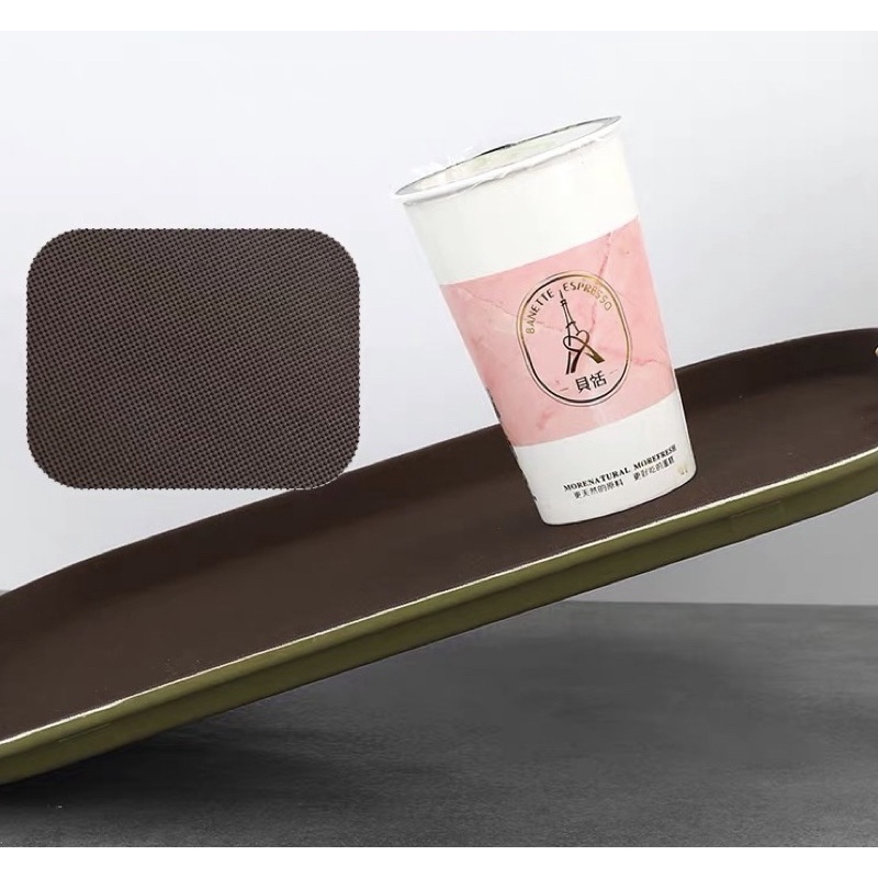 ・Khay được làm từ chất liệu nhựa bề mặt có vân đặc biệt , có khả năng giúp ly bám tốt trên khay , tránh tình trạng ly bị trơn trượt , rơi vỡ.