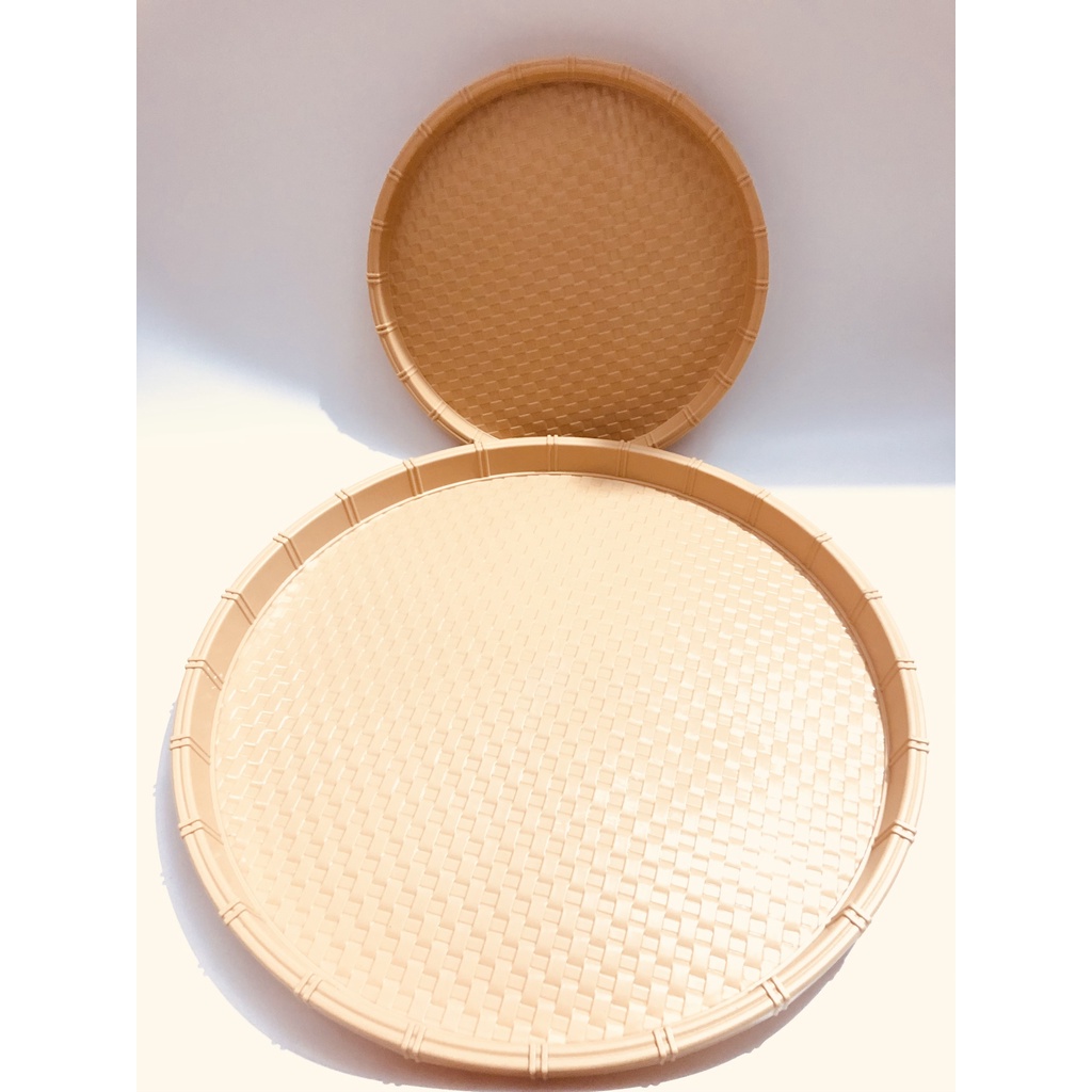 Nhà cửa & Đời sống > Bộ đồ bàn ăn > Khay, tấm lót bàn ăn || [Giá Sỉ] Khay Mẹt nhựa tròn giả mây tre Size 28-34-42-52cm・Đĩa mẹt tròn đựng bún đậu,đồ ăn vặt,mẹt gàCòn hàng