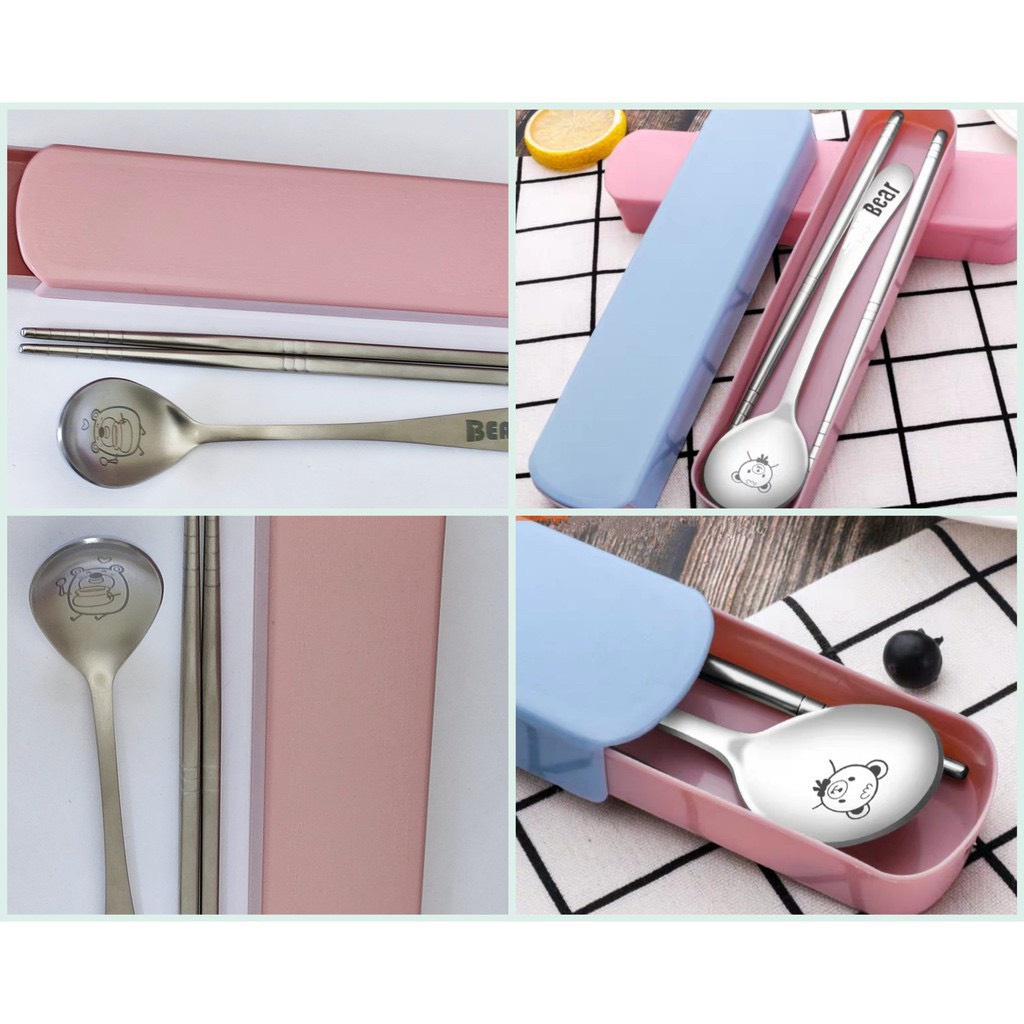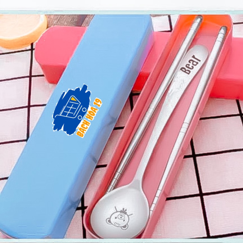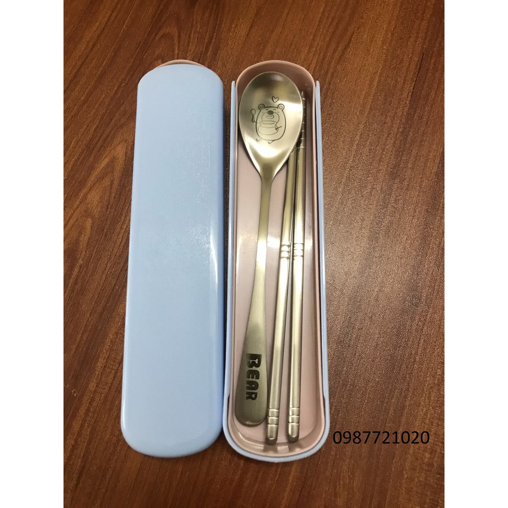 (GIÁ SỈ LẺ) Bộ thìa đũa INOX Gấu Bear có hộp đựng chắc chắn tiện lợi-ảnh thật