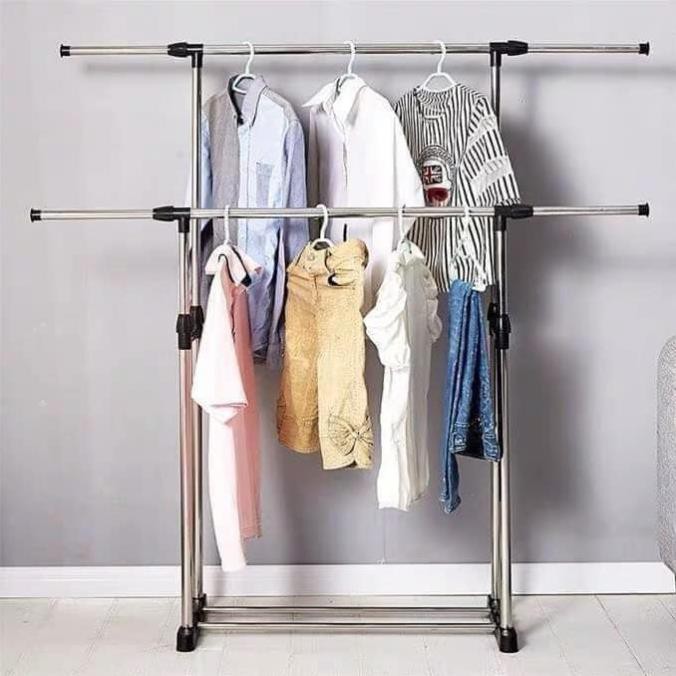 Nhà cửa & Đời sống > Dụng cụ chăm sóc nhà cửa > Dây phơi & giá phơi quần áo || (giá sỉ = lẻ) Giàn phơi quần áo 2 tầng inox có bánh xe tiện dụngCòn hàng
