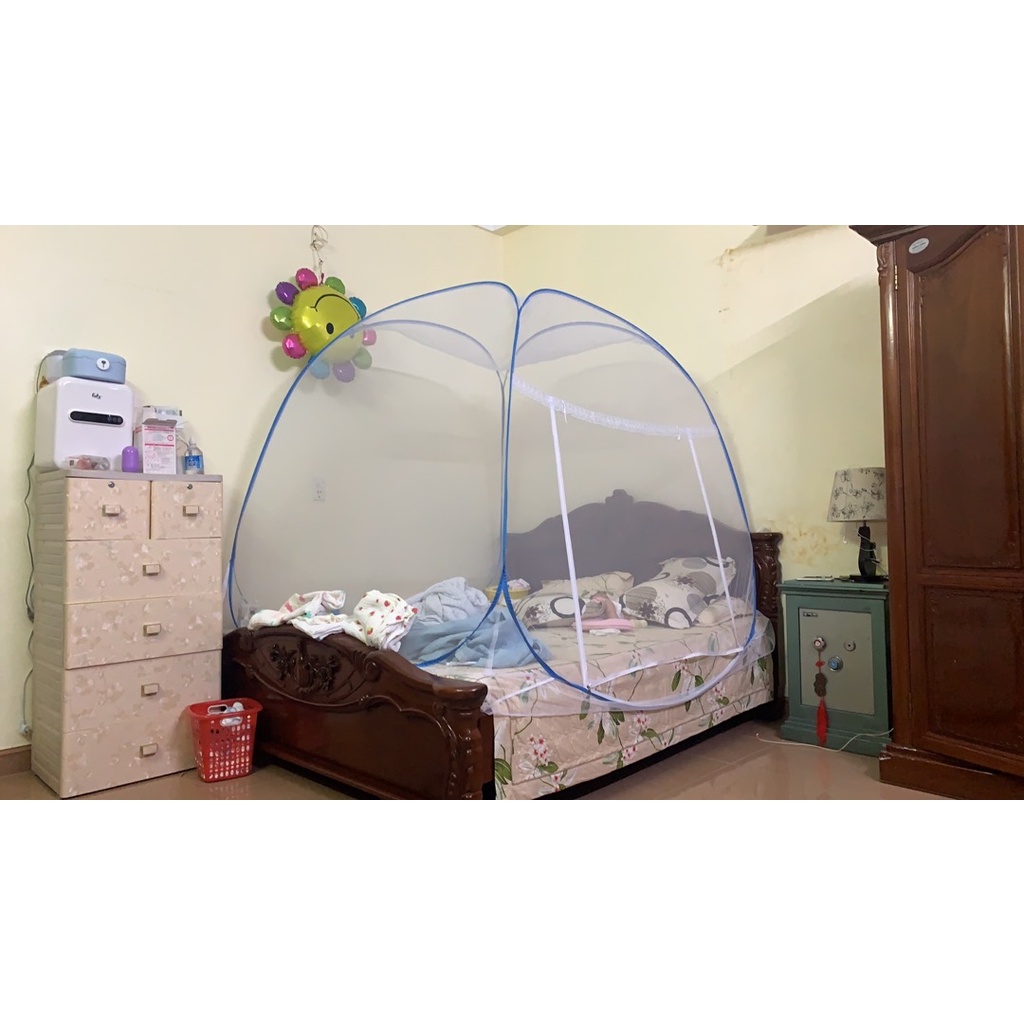 Mỗi gia đình đều nên sắm sẵn "màn chụp tự bung" trong nhà. Dùng ngủ trên giường, dưới đất, mang đi du lịch đều được.. Màn gấp gọn bỏ vào túi mang đi bất cứ đâu, rất tiện ạ
