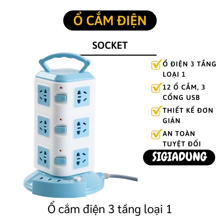 [SGD] Ổ Cắm Điện - Ổ Điện 3 Tầng 12 Ổ Cắm, 3 Cổng USB, Dây Dài 2m Có Tay Cầm Tiện Lợi 3504