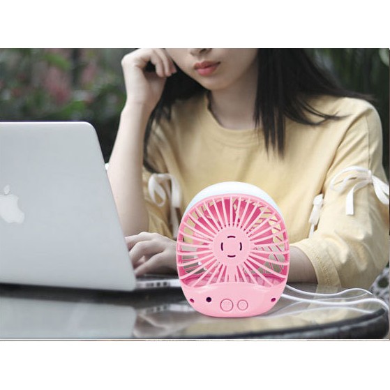Quạt mini để bàn có đèn siêu mát có thể tùy chỉnh ba tốc độ theo ý thích, có đèn led sử dụng như đèn pin, cấp nguồn bằng sạc pin.
