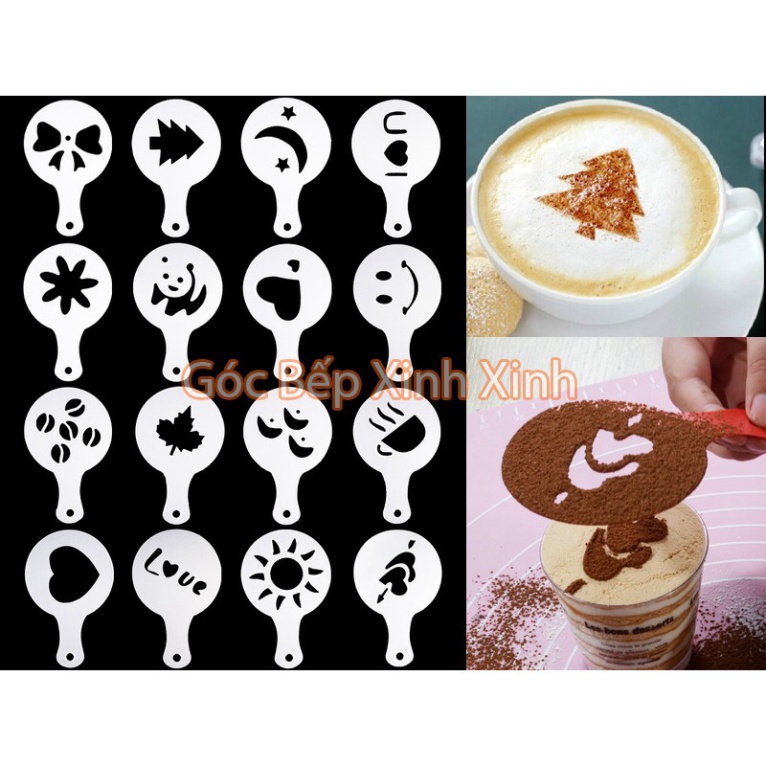 Nhà cửa & Đời sống > Dụng cụ nhà bếp > Dụng cụ pha trà, cà phê || [GIÁ SỈ SALE SHOCK] Bộ 16 khuôn nhựa rắc bột cacao capuchino tạo hình trang trí bánh/cà phê dày dặnCòn hàng